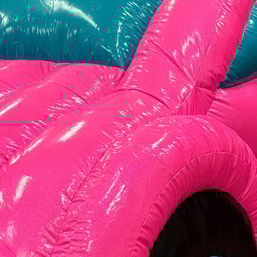 This bouncy castle is perfect for all the barbie style fans out there. It features a delightful pink slide on the front that adds an extra element of fun. The entire castle is covered in beautiful sparkles, making it truly magical. Kids will have a blast bouncing around and sliding down this enchanting bouncy castle. It is designed to capture the imagination and bring joy to any party or event. The pink and sparkly theme is sure to make every little girl's dream come true. So, let the little princesses dive into a world of fun and excitement with this amazing bouncy castle.
