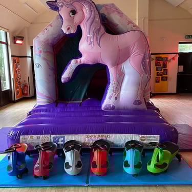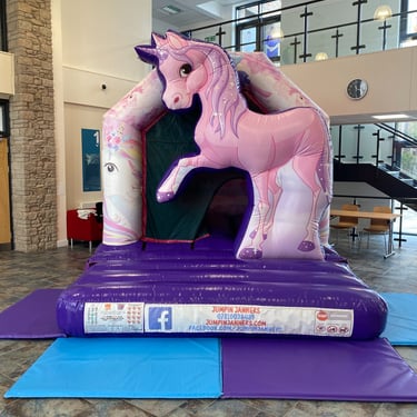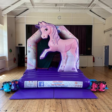 The 3D Unicorn Bouncy Castle is a perfect choice for children's parties and events. This magical inflatable castle is designed with vibrant colours and features a 3D unicorn on top, adding an extra touch of whimsy and enchantment. With its spacious interior, children can bounce and play to their heart's content, enjoying hours of endless fun. The castle is made with high-quality materials, ensuring durability and safety for the little ones. It is easy to set up and take down, making it convenient for any occasion. Let your child's imagination run wild as they enter this fantastical world, filled with laughter and joy. The 3D Unicorn Bouncy Castle is sure to create unforgettable memories for your little ones and their friends.