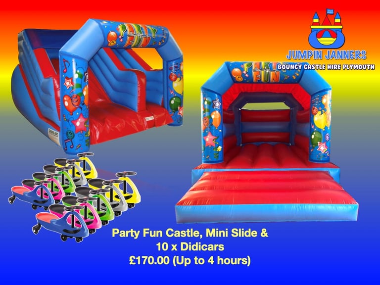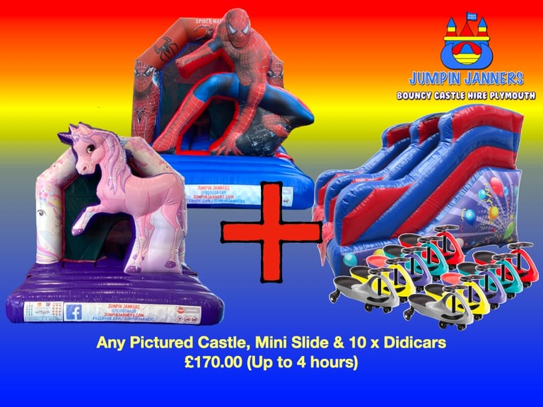 Jumpin Janners bouncy castle hire in Plymouth offers exciting party packages that include bouncy castles. With discounts available for booking multiple products, it becomes more affordable for you to enjoy a fun-filled day. Simply provide the spacious hall where our team will set up all the equipment for your pleasure and convenience. There's no excuse for not having a bouncy and enjoyable day with Jumpin Janners. Whether it's a birthday party or any other special occasion, our bouncy castle hire services will ensure that you and your guests have a fantastic time. Choose us for a memorable and entertaining experience in Plymouth.