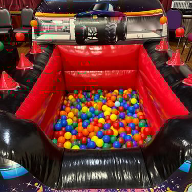 The Monster Truck Themed Air Juggler Ball Pit is an amazing addition to any party or playtime activity. This ball pit is perfect for those who love monster trucks and car themes as it brings a whole new level of fun and excitement. The vibrant and colourful design captures the imagination of little ones, taking them to a magical world. The air juggler feature adds an extra thrill as kids toss and catch the soft balls floating in the air. It's not only fun but also promotes hand-eye coordination, keeping children entertained for hours. Whether it's a birthday party or a playdate, children of all ages will surely love this monster truck-themed ball pit.