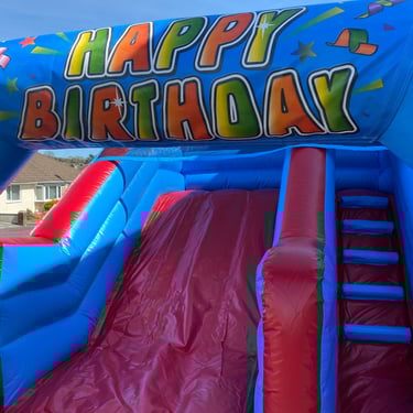 The Party Fun Inflatable Slide is perfect for any celebration! This inflatable slide comes with interchangeable fronts, allowing you to choose between a "Happy Birthday" or "Car" theme. Whether you're hosting a birthday party or a themed event, this slide is sure to bring endless fun and excitement. Kids will love jumping and bouncing around this colourful and safe inflatable. It provides a safe and secure environment for children to play, ensuring peace of mind for parents. With its vibrant colours and eye-catching design, the Party Fun slide is a must-have for any party or gathering. Get ready for non-stop laughter and joy with this incredible bouncy castle!