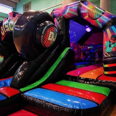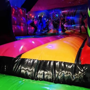 The 3D Disco Bouncy Castle is a vibrant and exciting addition to any party or event. With its eye-catching colours and unique design, it is sure to capture the attention of children. But what sets this bouncy castle apart is its built-in speaker, which can be easily connected via bluetooth. This allows you to play your favourite music and create a lively and energetic atmosphere. Whether you want to dance, jump, or simply have a blast, the 3D disco bouncy castle is the perfect choice for a fun-filled experience. So gather your friends and family, and get ready to groove to the rhythm of the music while bouncing around in this incredible inflatable castle.